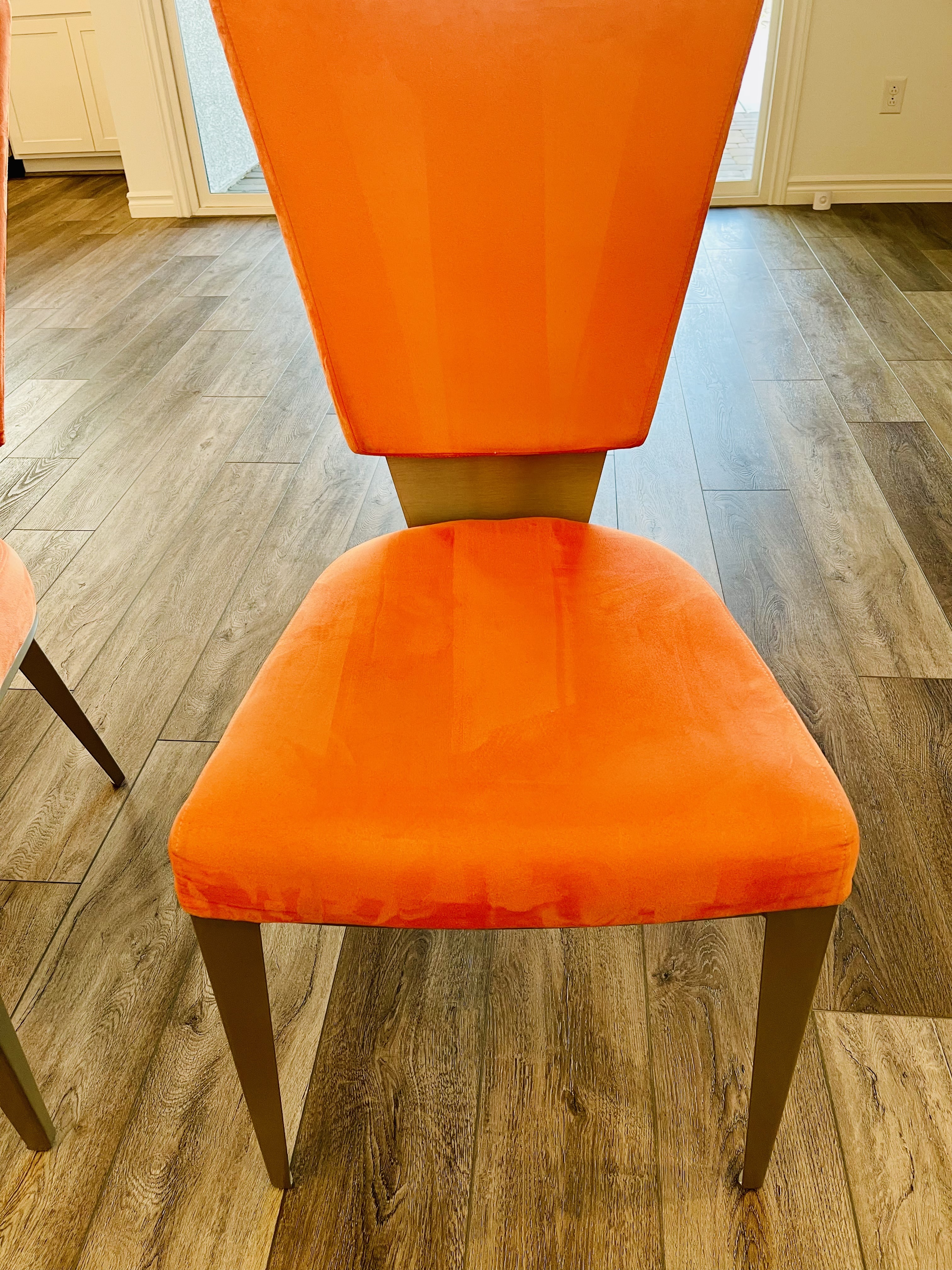 Selling 6 dining room chairs. Orange suede. Original price $3,600. Selling for $200.